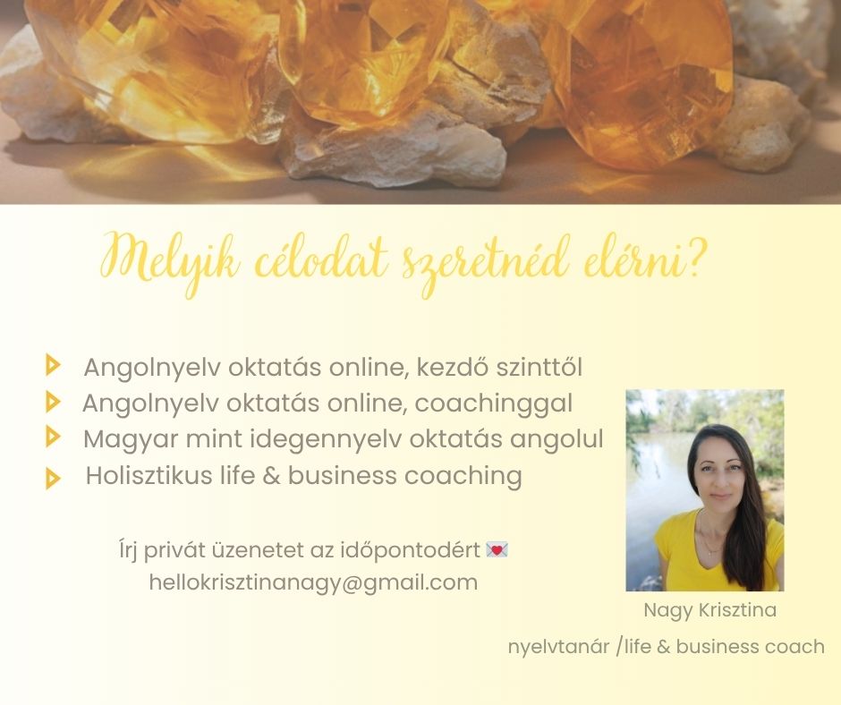 Nagy Krisztina vagyok, diplomás angolnyelvtanár, magyar mint idegennyelv tanár, holisztikus life & business coach.